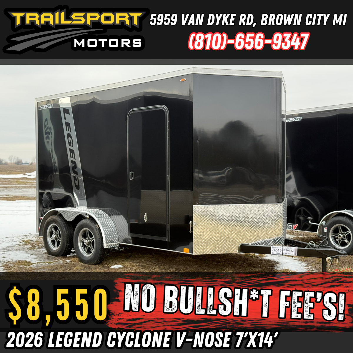 2026 LEGEND Cyclone V-Nose 7x14 Black
